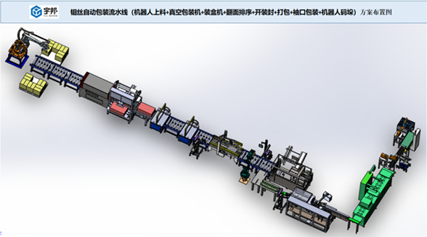 鉬絲盤自動包裝裝箱碼垛流